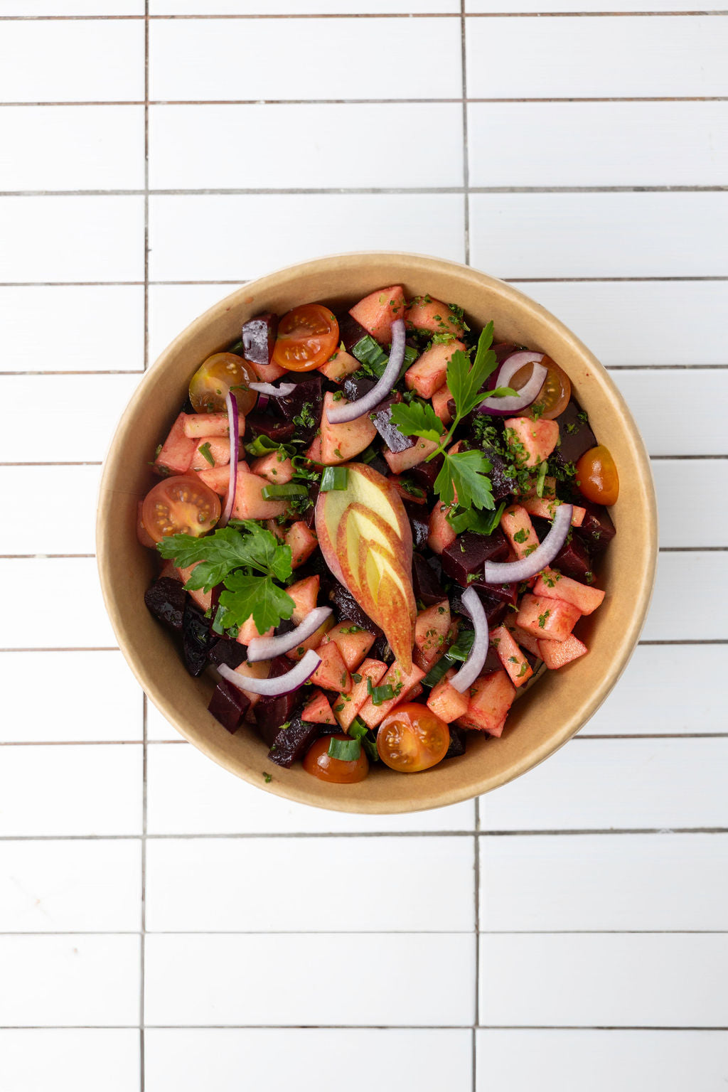 Beetroot , tomatoes , Granny Smith apple , spring onions , olive oil , white vinegar (sulfites)