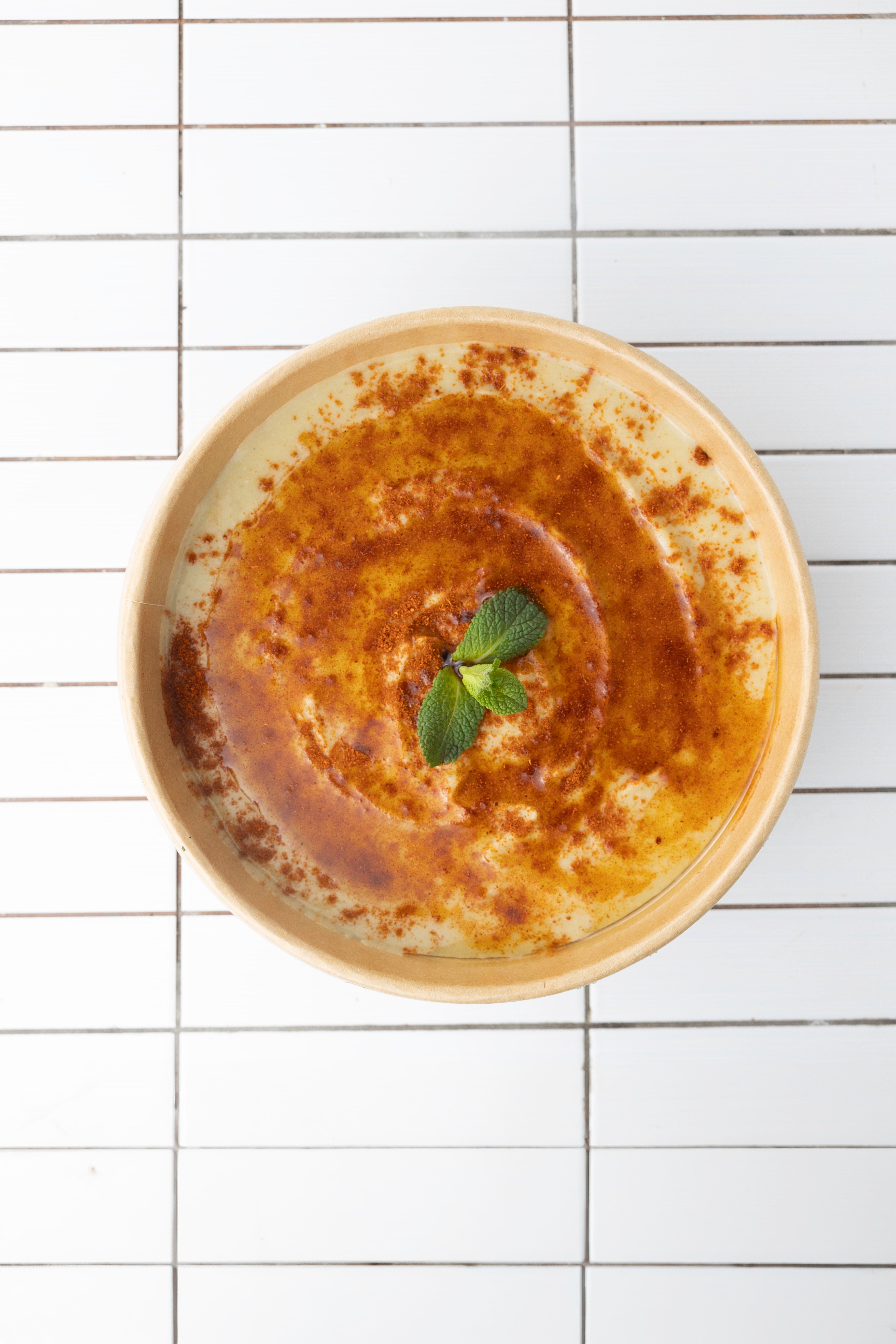 Red lentils , olive oil , garlic , cayenne pepper , lemon juice , yogurt (milk) , salt and pepper